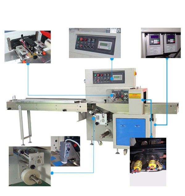 | 4 | semi automatic Hot sale Manufacturers Biscuit cake bread packing machine food pillow Flow Wrapping packaging packing machine Process In Sri Lanka |